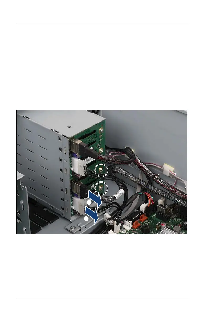 Ê Disconnect the connectors of the SAS/SATA cable (1) and the power cable