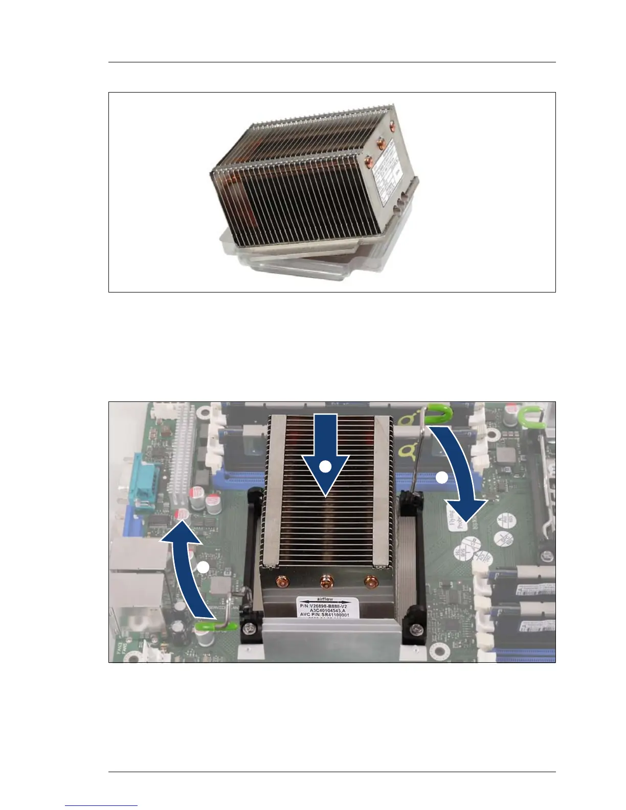 Ê Mount the heat sink on the processor (1) so that the side with the visible