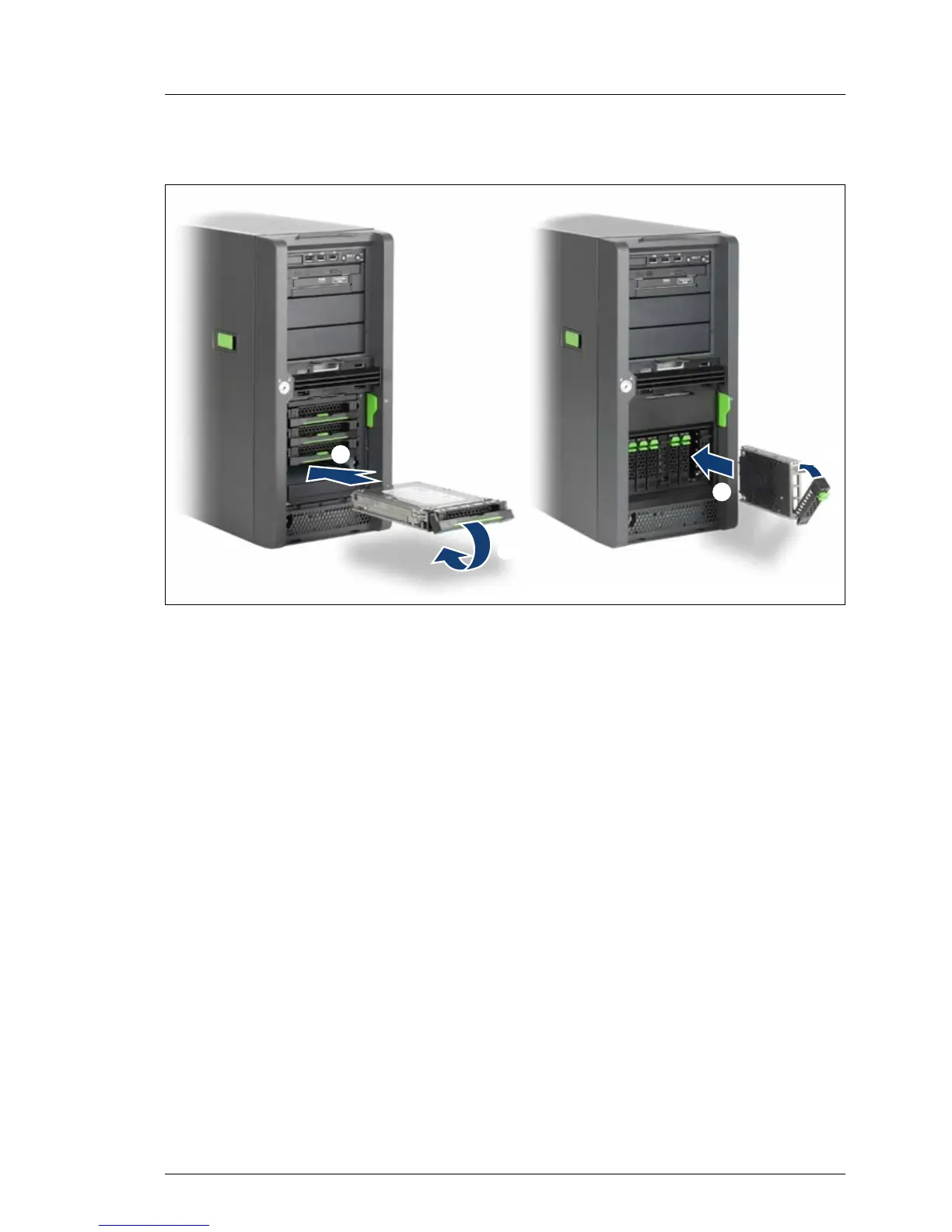 Ê Carefully push the HDD module into the empty slot (1) until it stops.