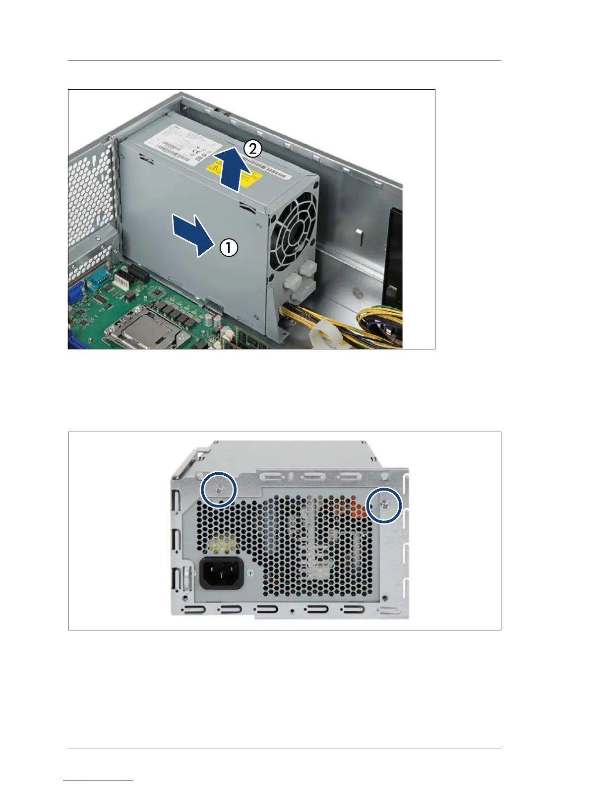 Ê Lift the power supply unit out of the chassis (2).