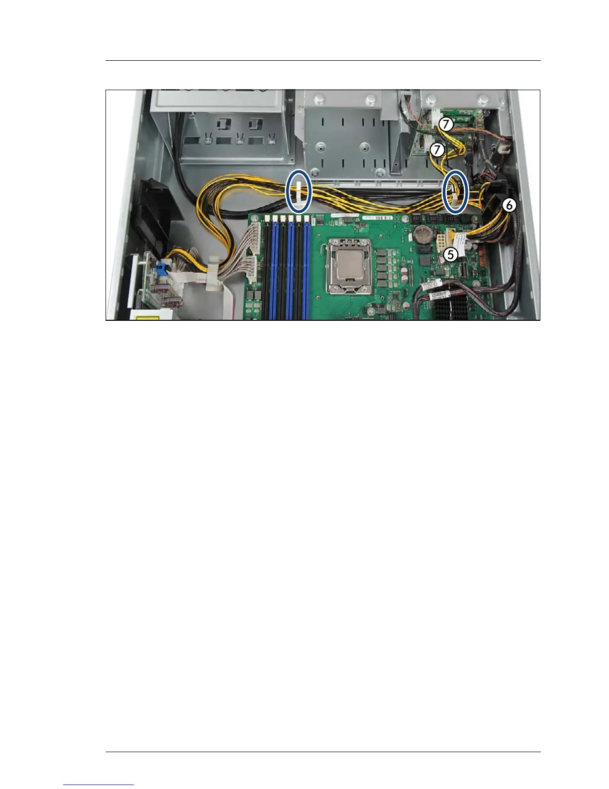 Ê Connect the power cable (4 in figure 57) to the system board and the SAS