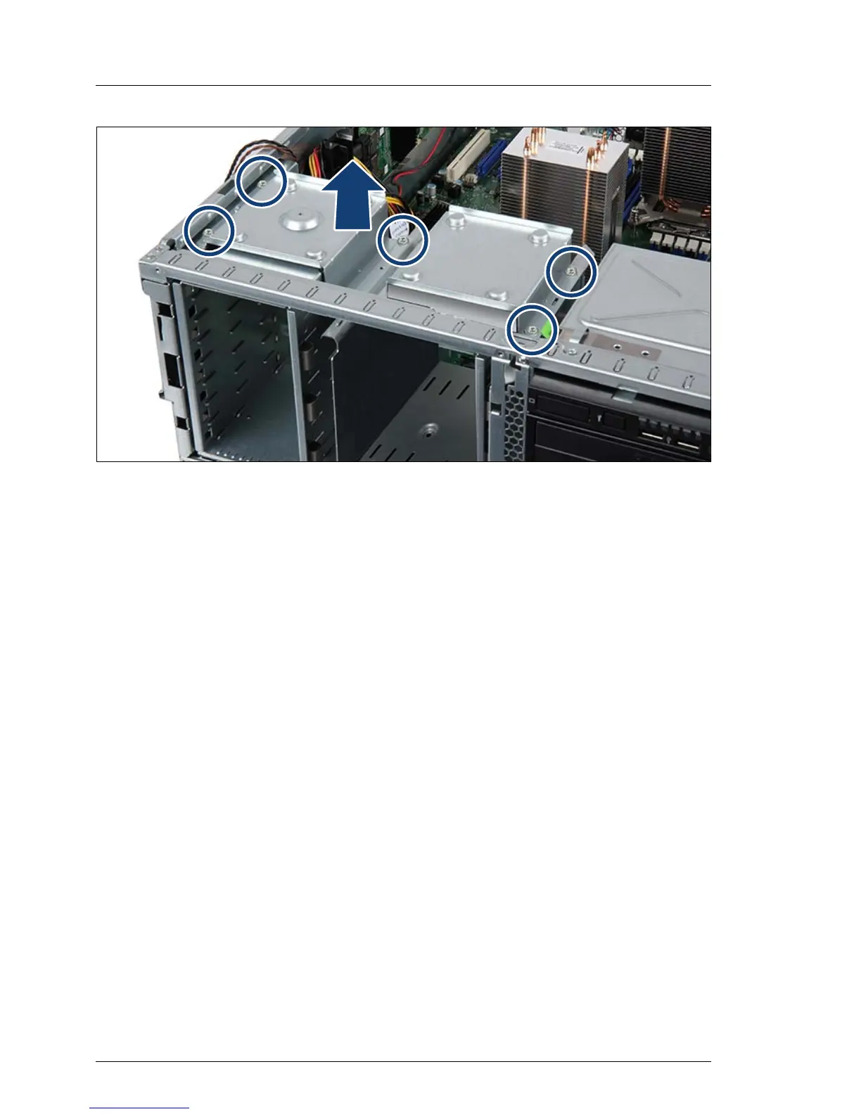 Ê Remove five screws from the 2.5-inch HDD bay top cover (see circles).