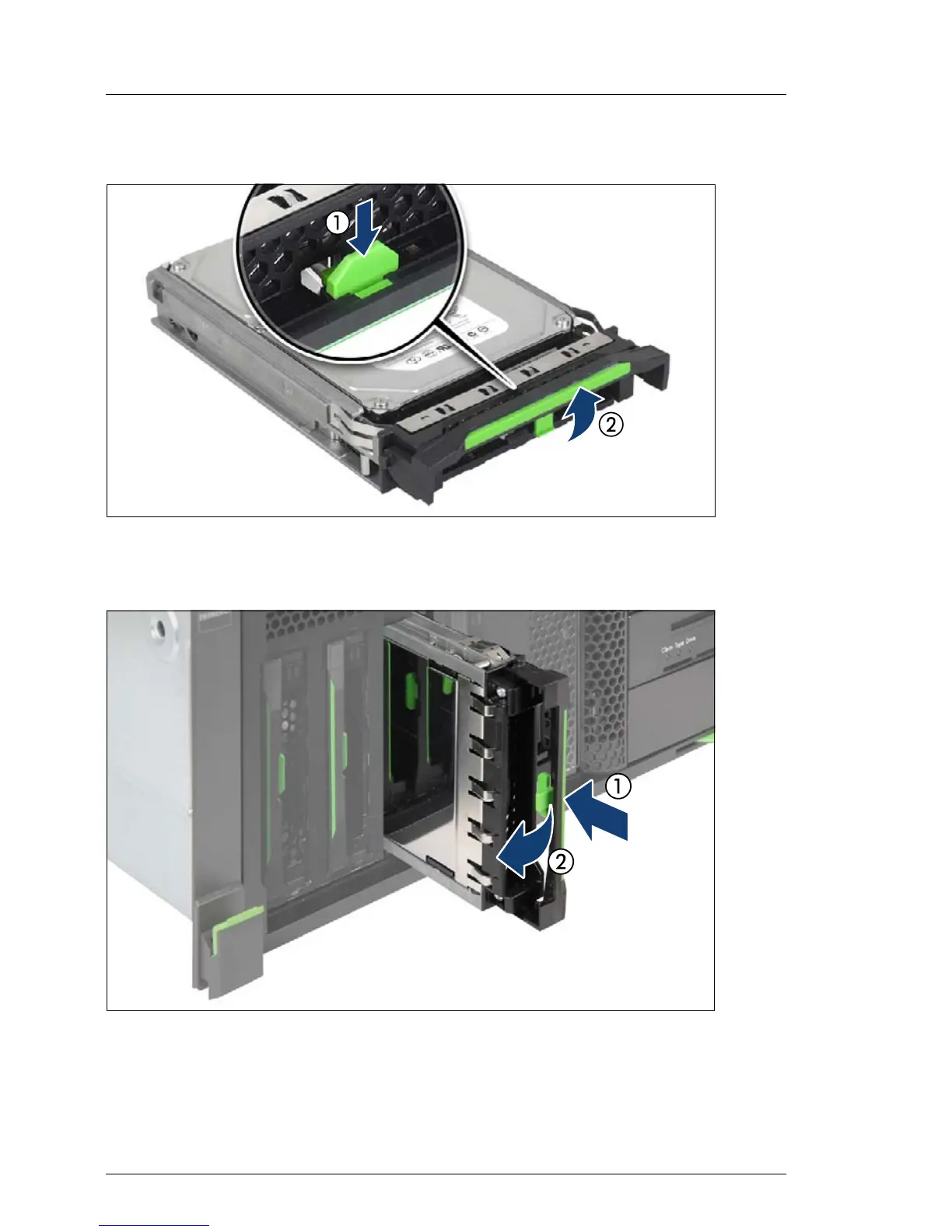 Ê Insert the HDD module into a drive bay and carefully push back as far as it