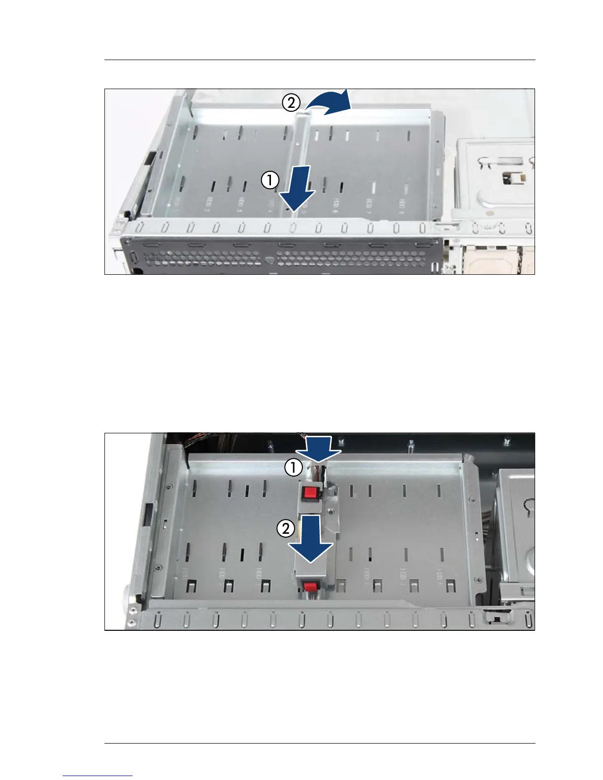 Ê Fold down the HDD bay top cover (2) until it is properly seated on the HDD