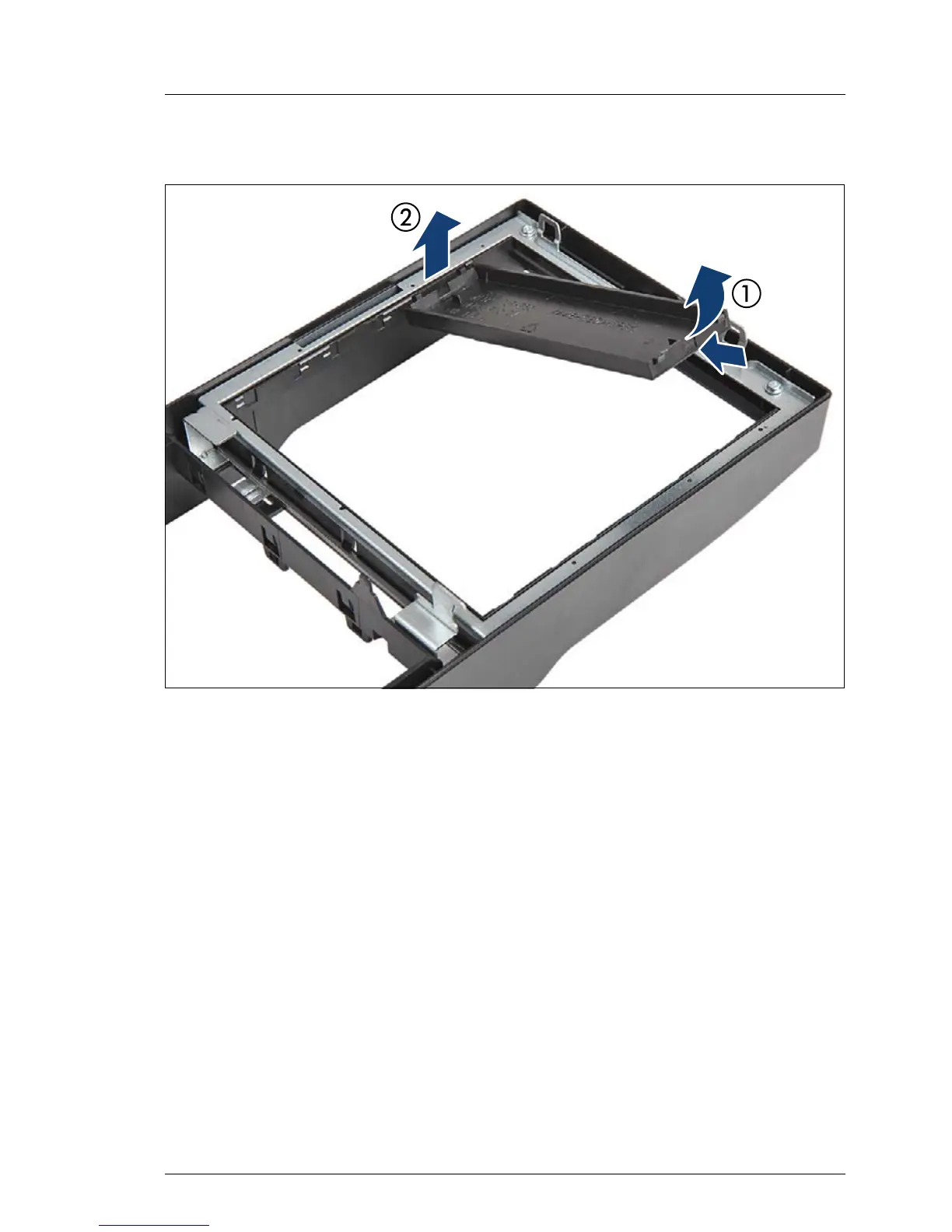 Ê Fold up (1) and remove the desired accessible drive covers (2).