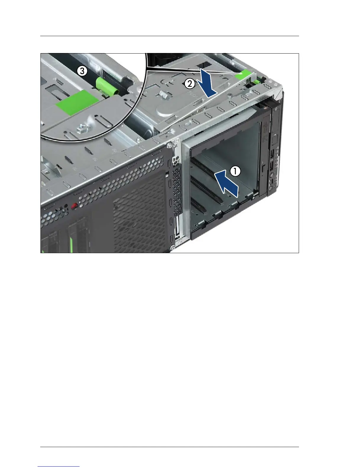 Ê Insert the HDD extension box into installation bays (1) and carefully push in