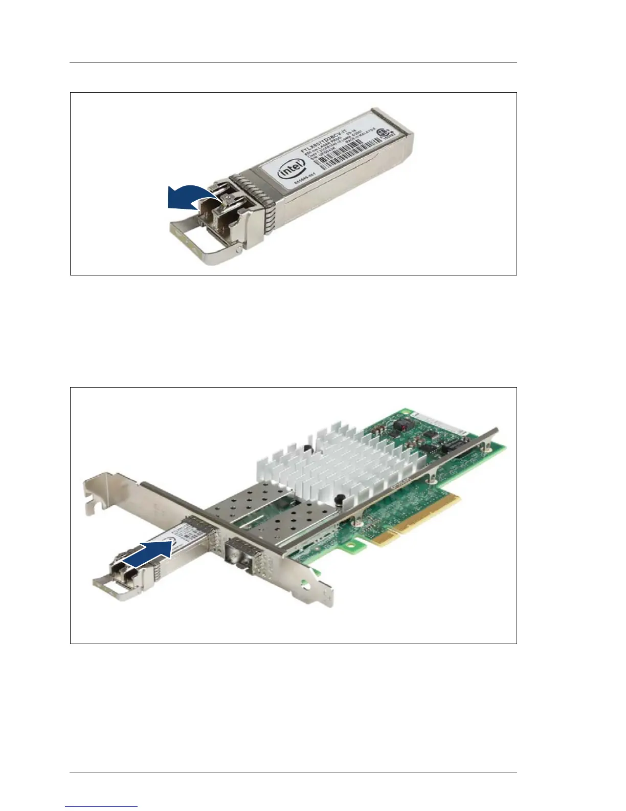 Ê Insert and slide the SFP+ transceiver module into the socket connector as