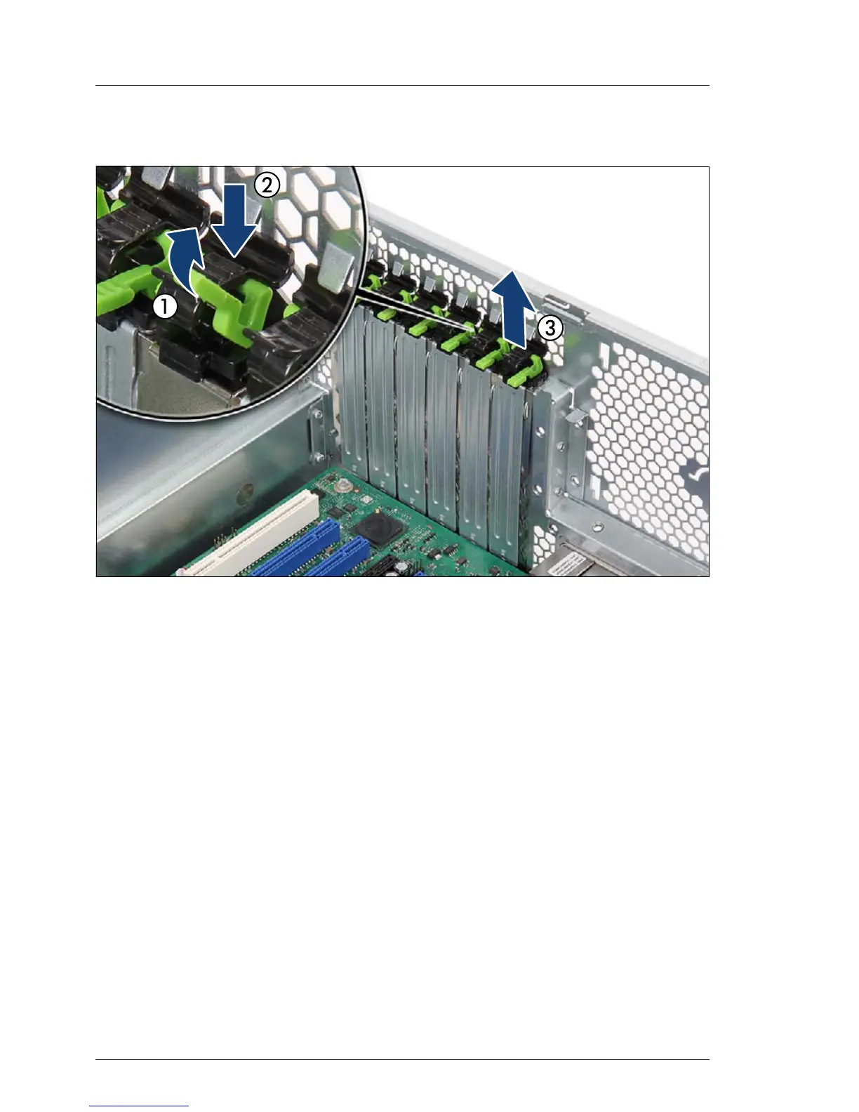 Ê Press down on the slot bracket clamp to disengage it (2, see close-up).