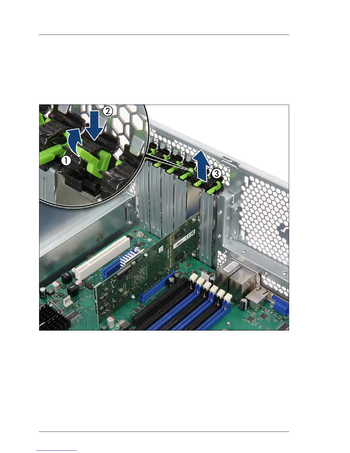 Ê Press down on the slot bracket clamp to disengage it (2, see close-up).