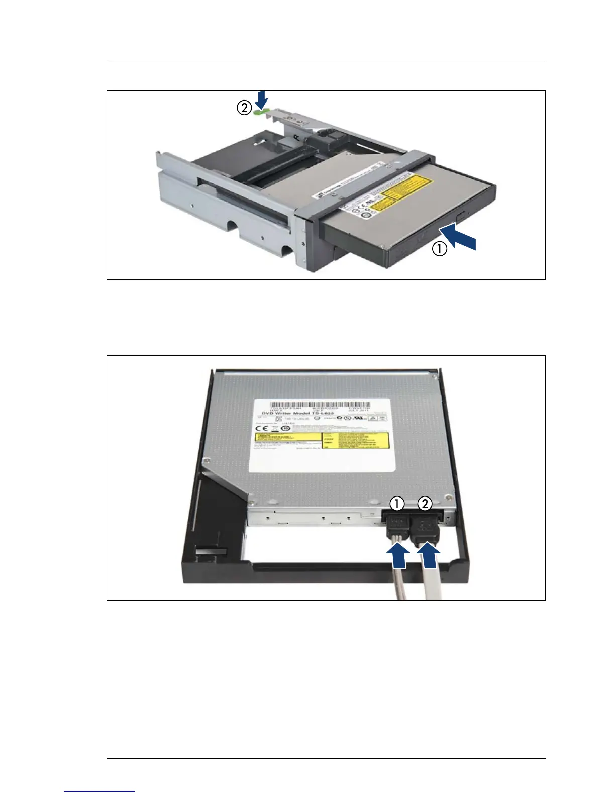 Ê Connect the SATA power cable (1) and the SATA cable (2) to the slimline