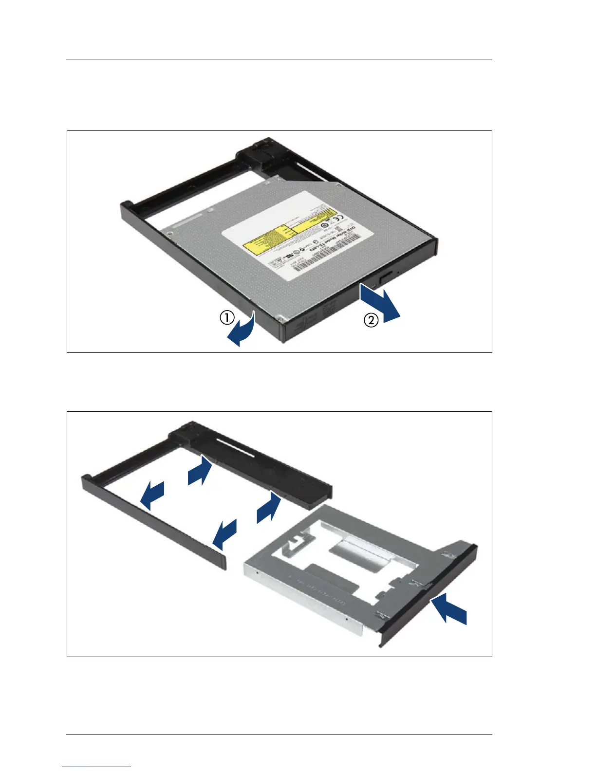 Ê Disengage (1) and remove (2) the slimline ODD from its installation frame.