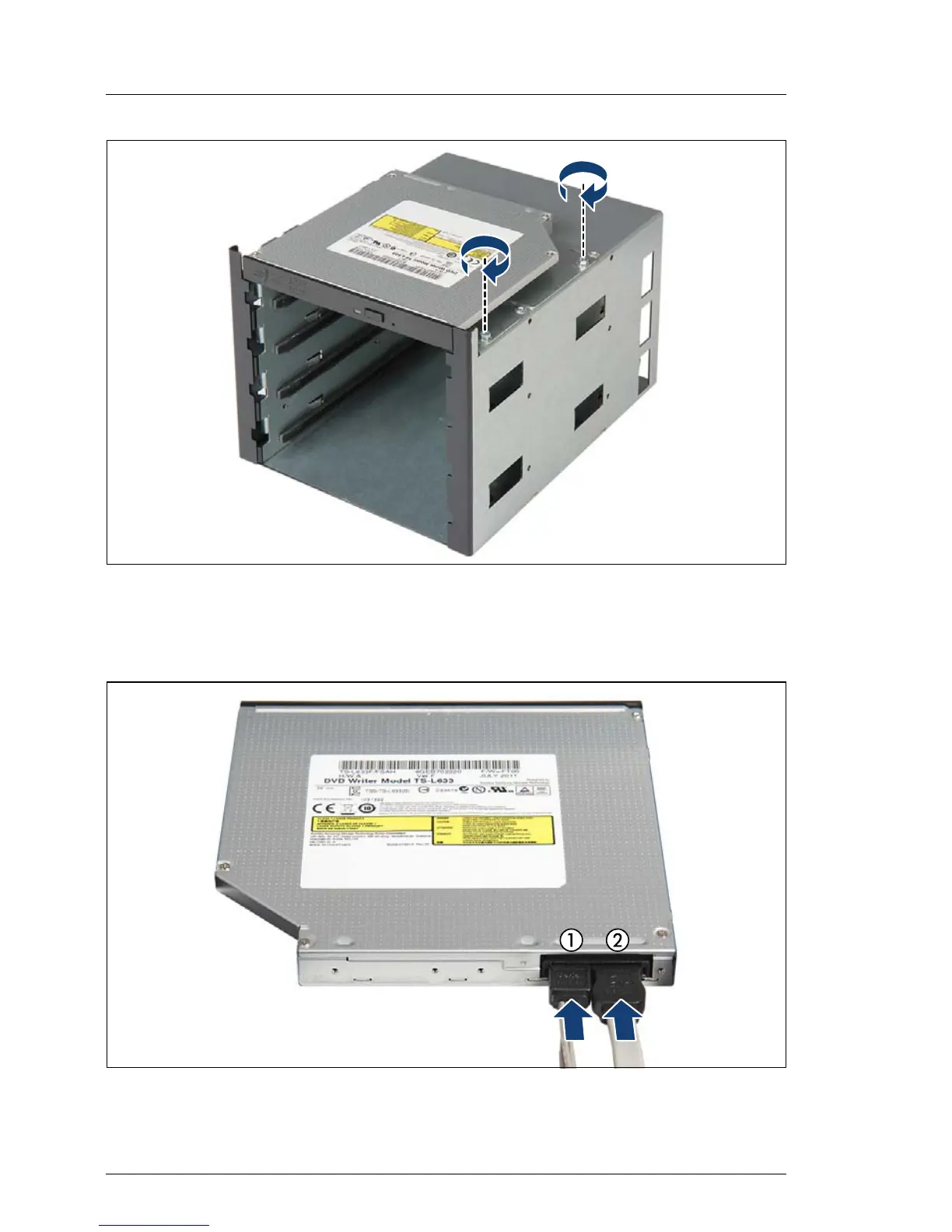 Ê Connect the power cable (1) and the SATA cable (2) to the slimline ODD.