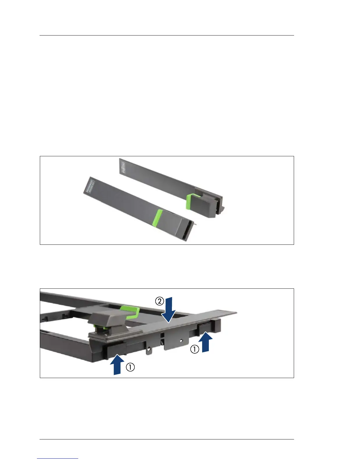 Ê Fit the rack mounting bracket on the two hooks on the rack front bezel (1).