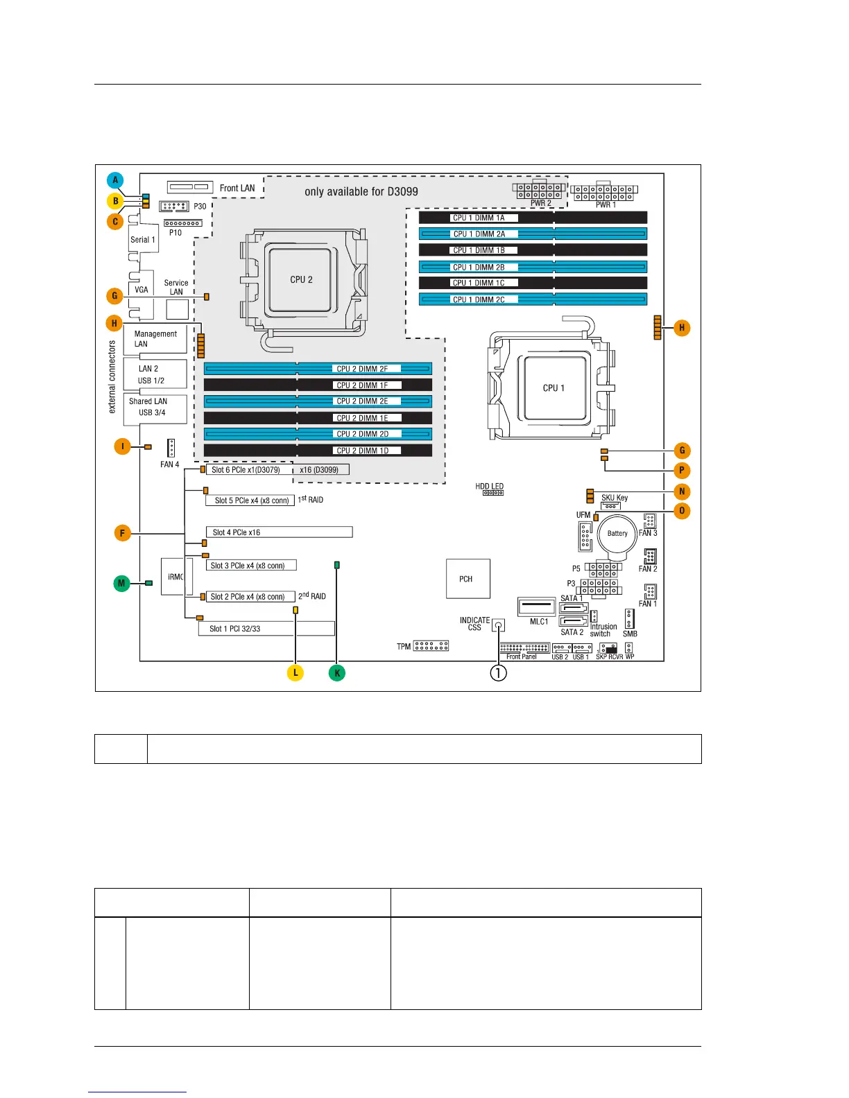 I LEDs A, B and C are visible from the outside on the server rear. All other