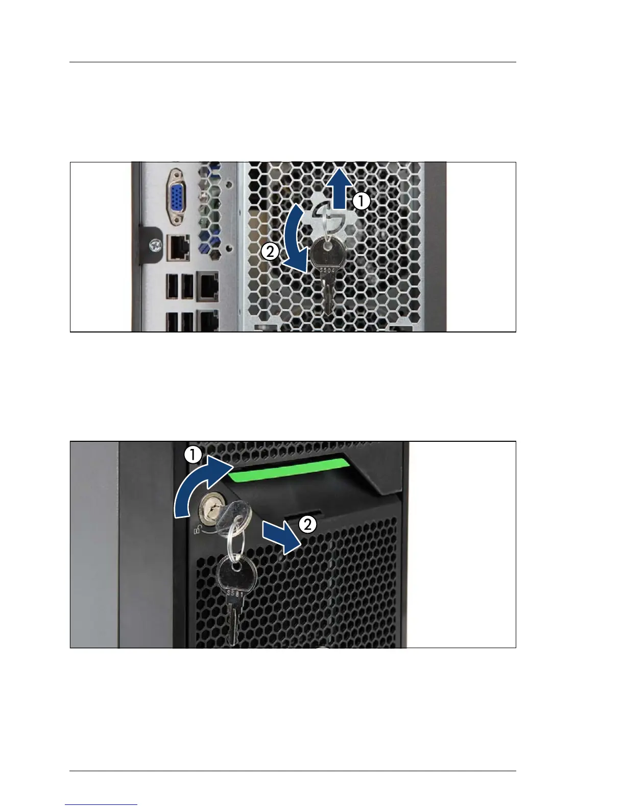 Ê Turn the key clockwise to unlock the front and side covers (1).