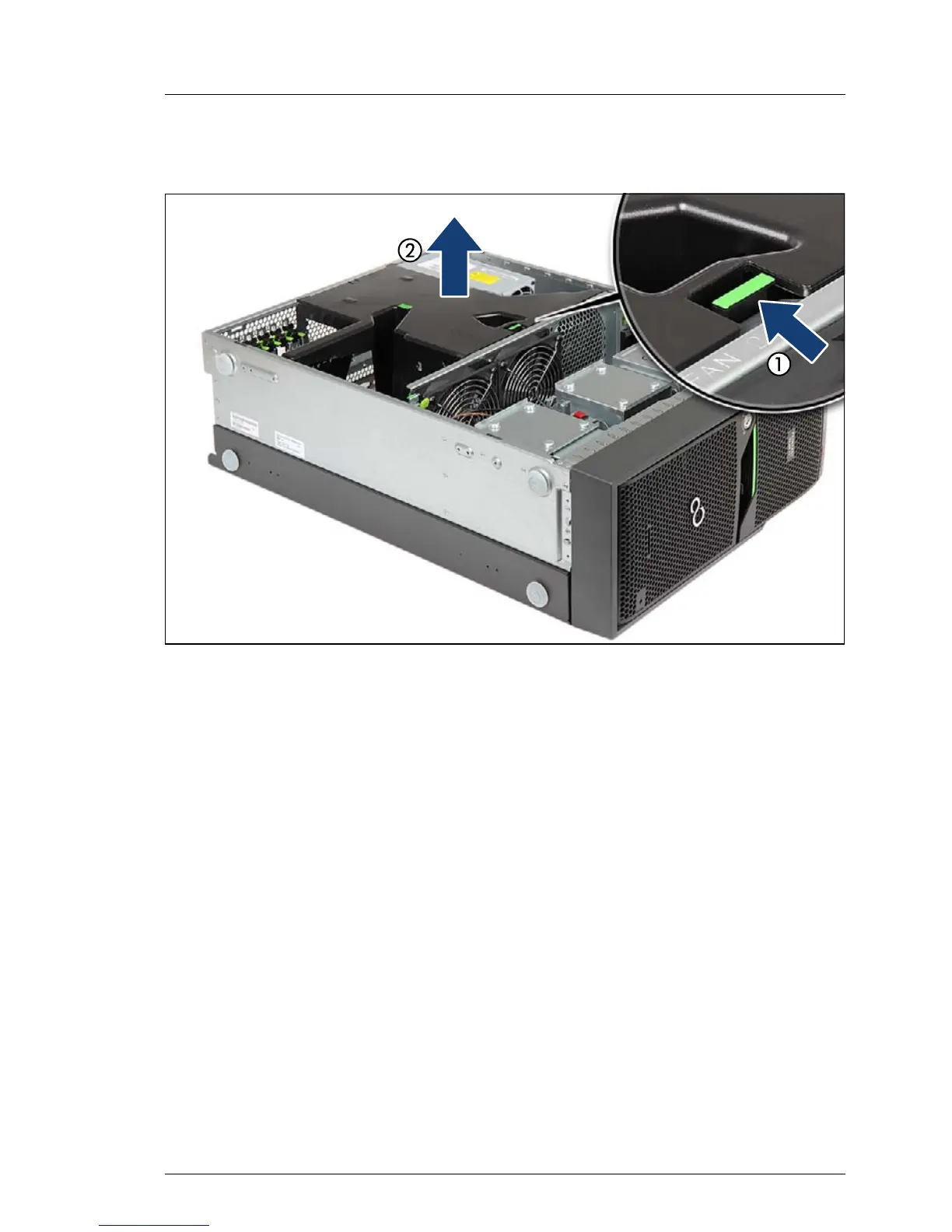 Ê Hold the system air duct by the two green touch points and lift it out of the