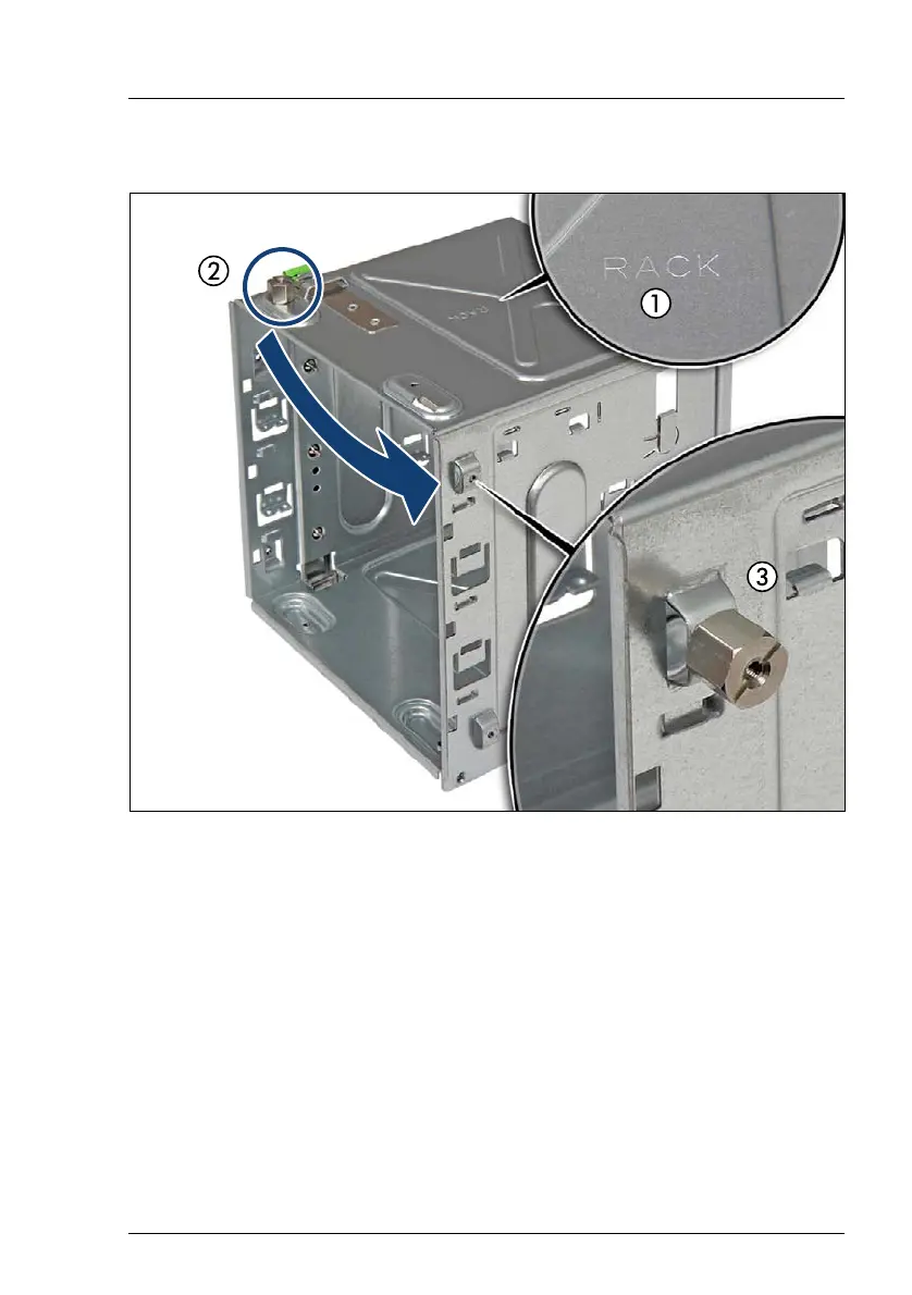 Ê Remove the threaded bolt from the upper edge of the accessible drive cage