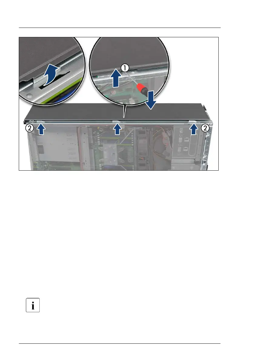 Ensure that the three hooks on the right side cover rest in the wide ends of
