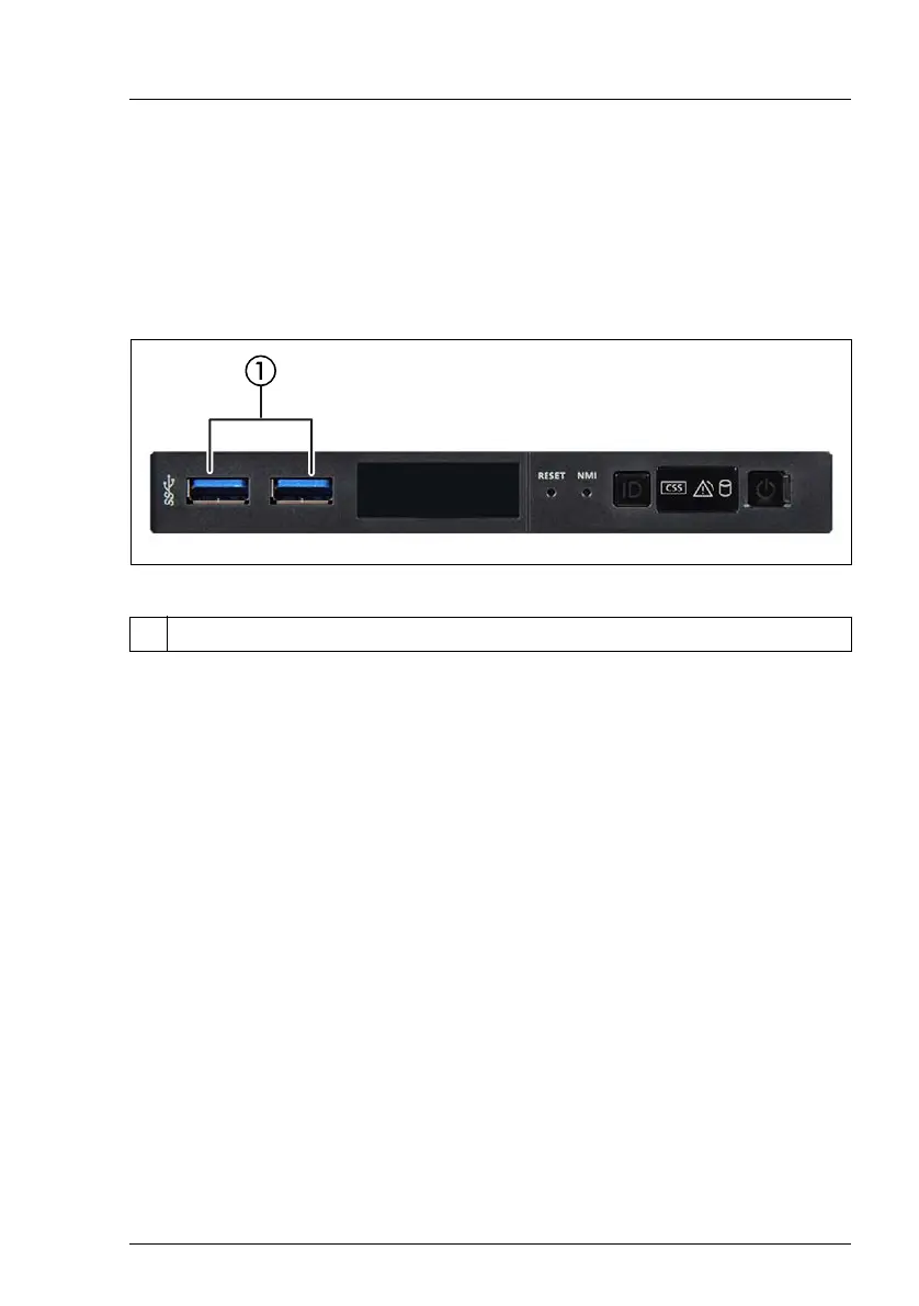 Fujitsu PRIMERGY TX2550 M5 - Connectors, Controls and Indicators; Connectors on the Server; Server Front