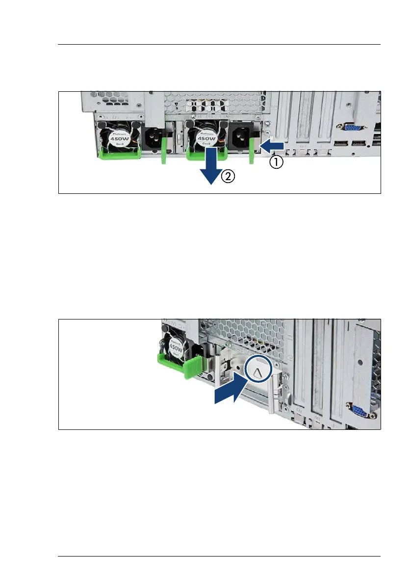 While keeping the green locking latch pressed, pull the PSU out of its slot