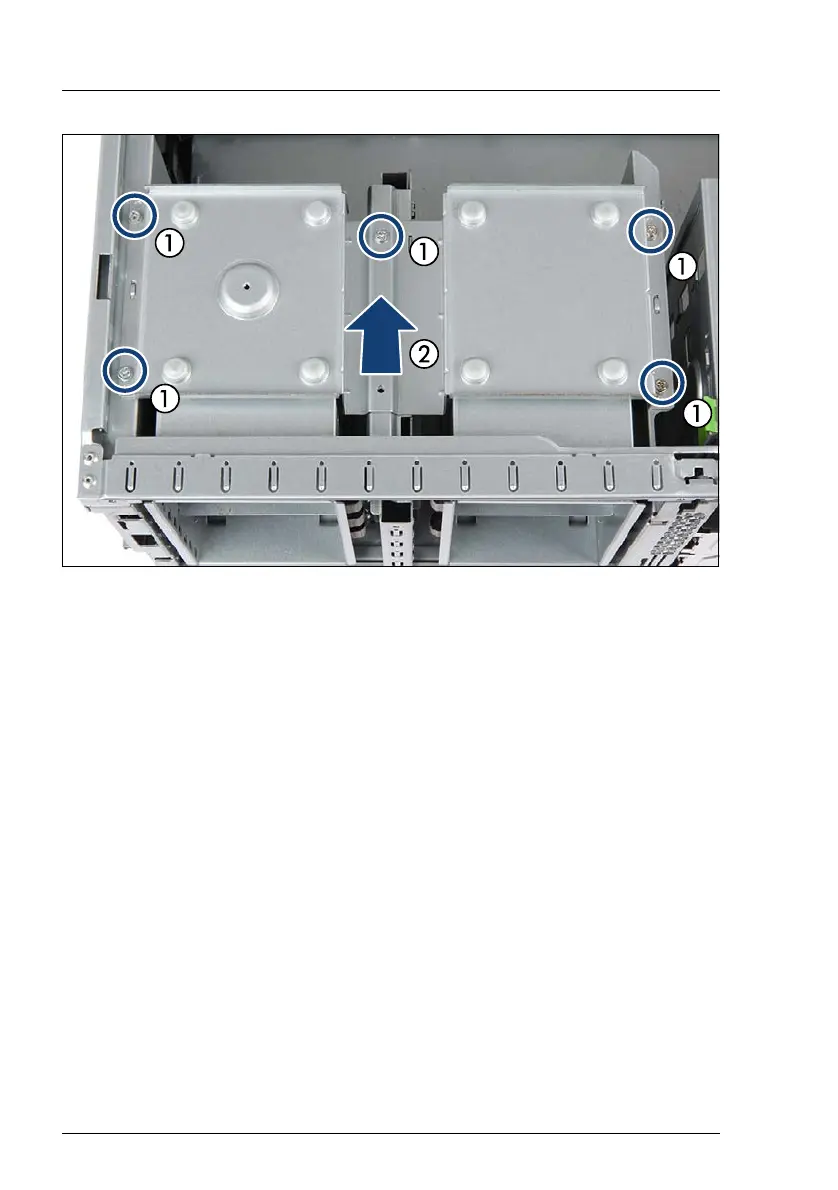 Remove five screws from the 2.5-inch HDD bay top cover (1).