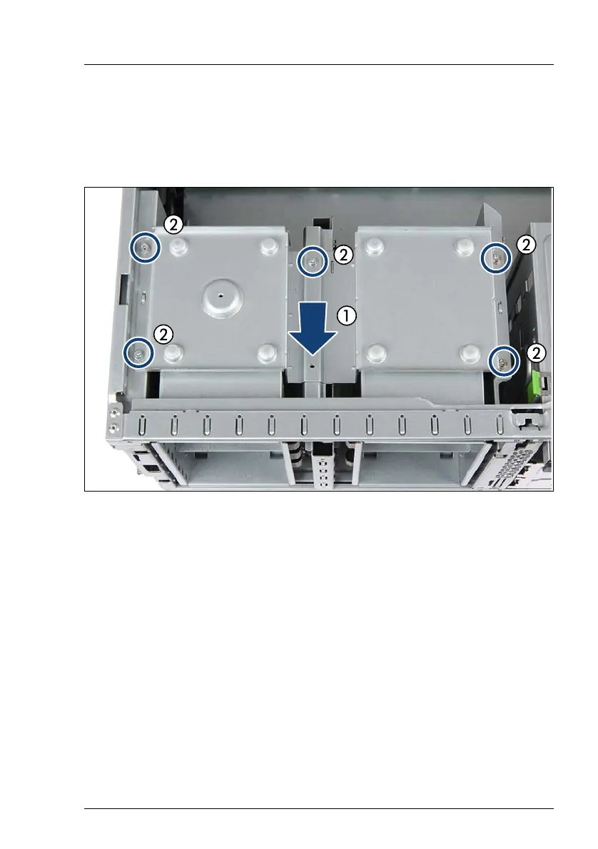 Lower the 2.5-inch HDD bay top cover onto the HDD installation bays (1).