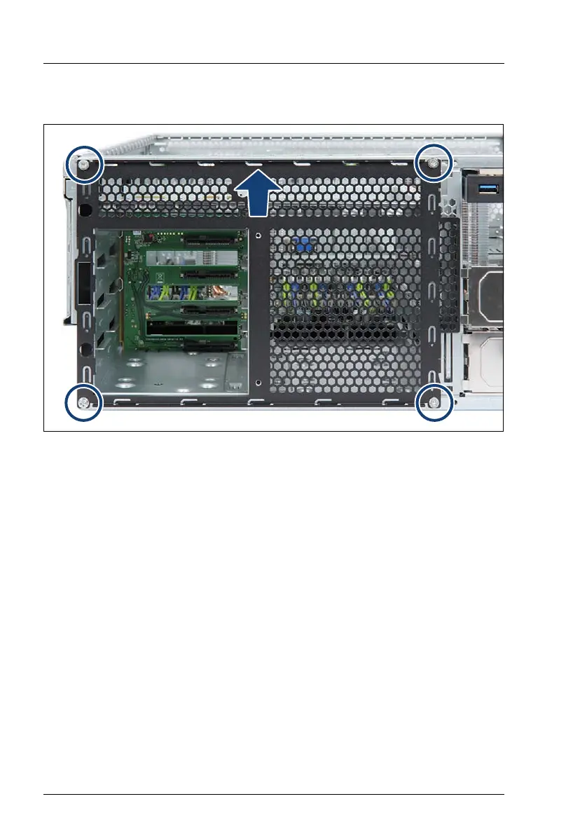 Remove four screws from the 4x 3.5-inch HDD front panel (see circles).