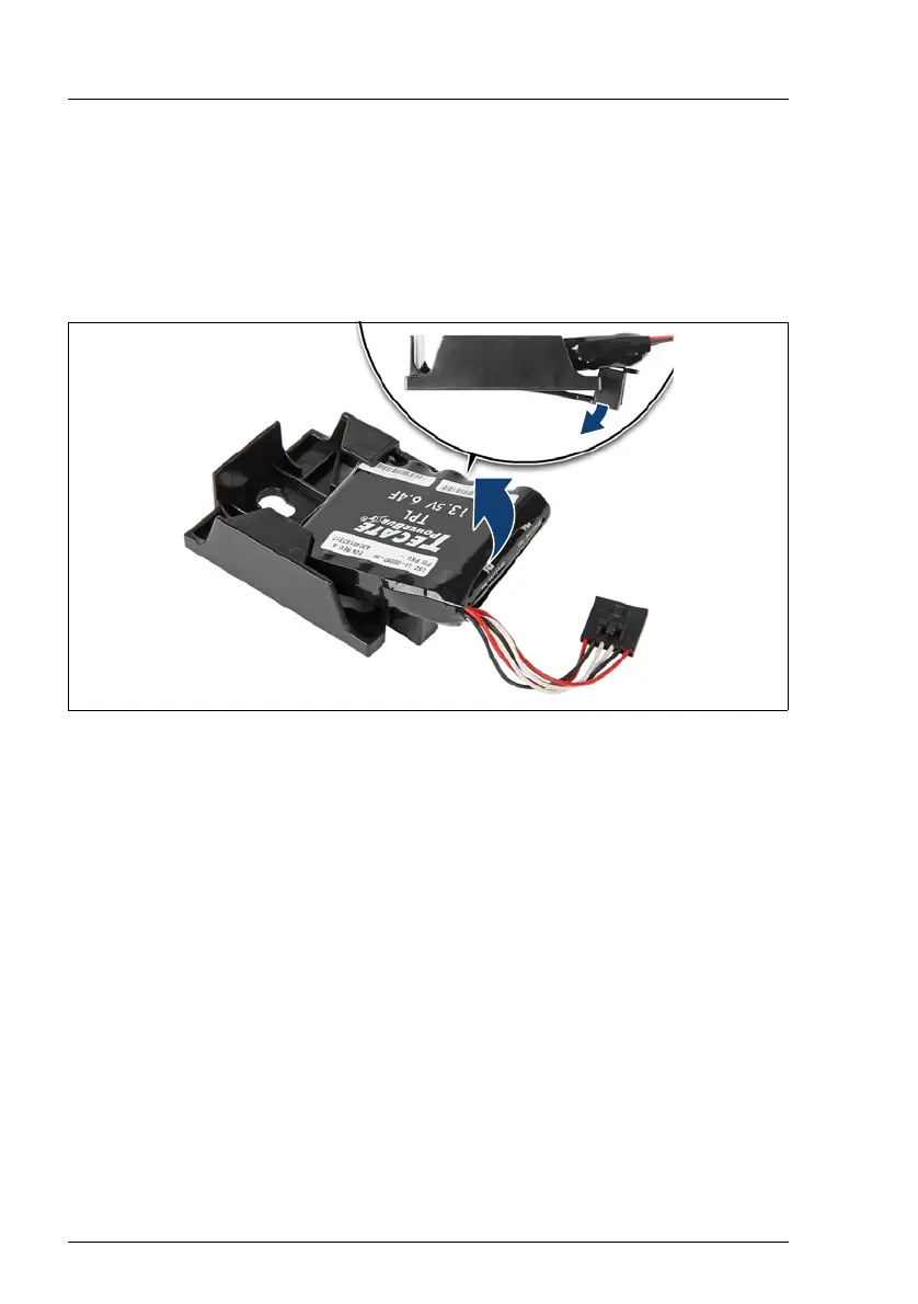 At a slight angle, slide the FBU from under the retaining brackets of the FBU