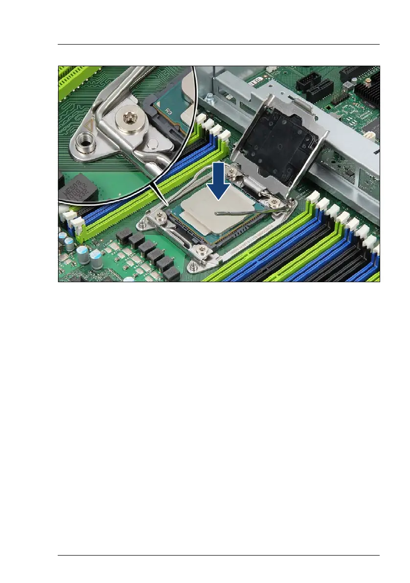 Lower the CPU straight down without tilting or sliding it in the socket.