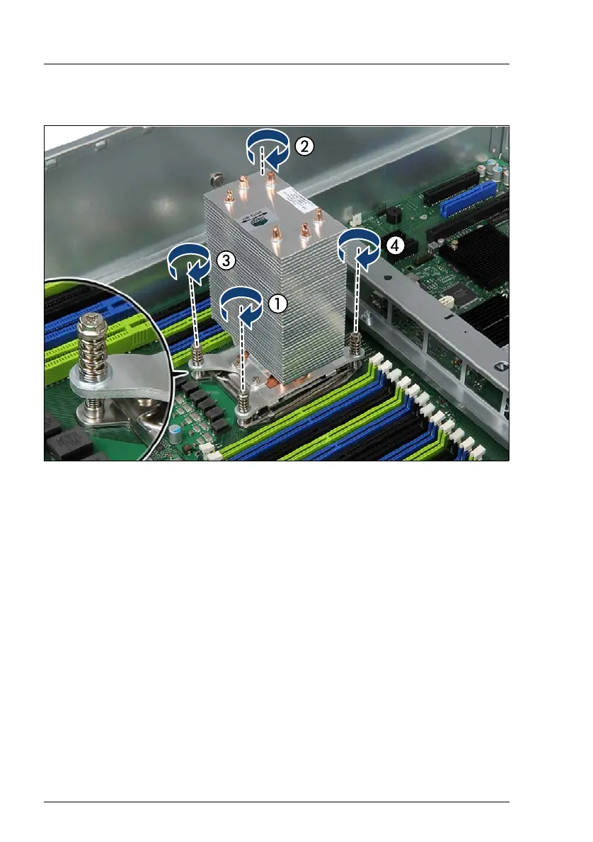 Fasten the four captive screws on the heat sink in a crossover pattern (nut