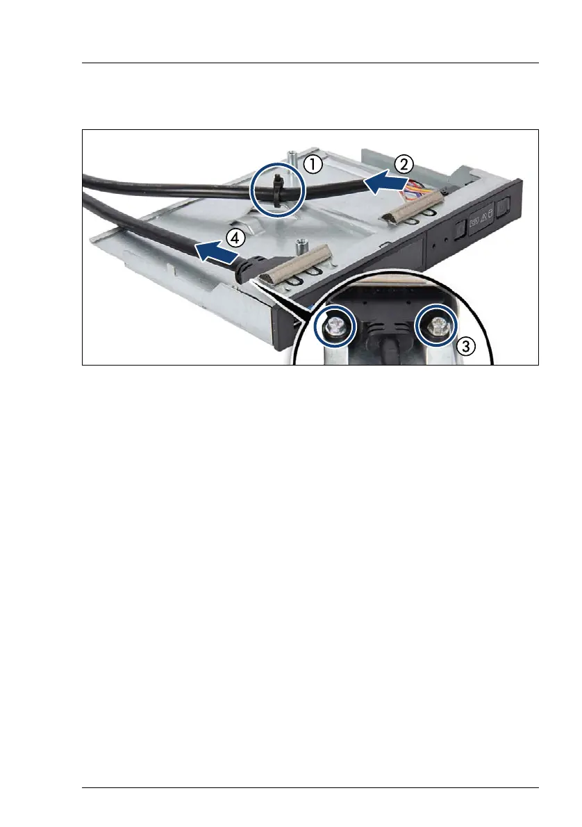 Cut through the cable tie (1) and remove the front panel cable (2).