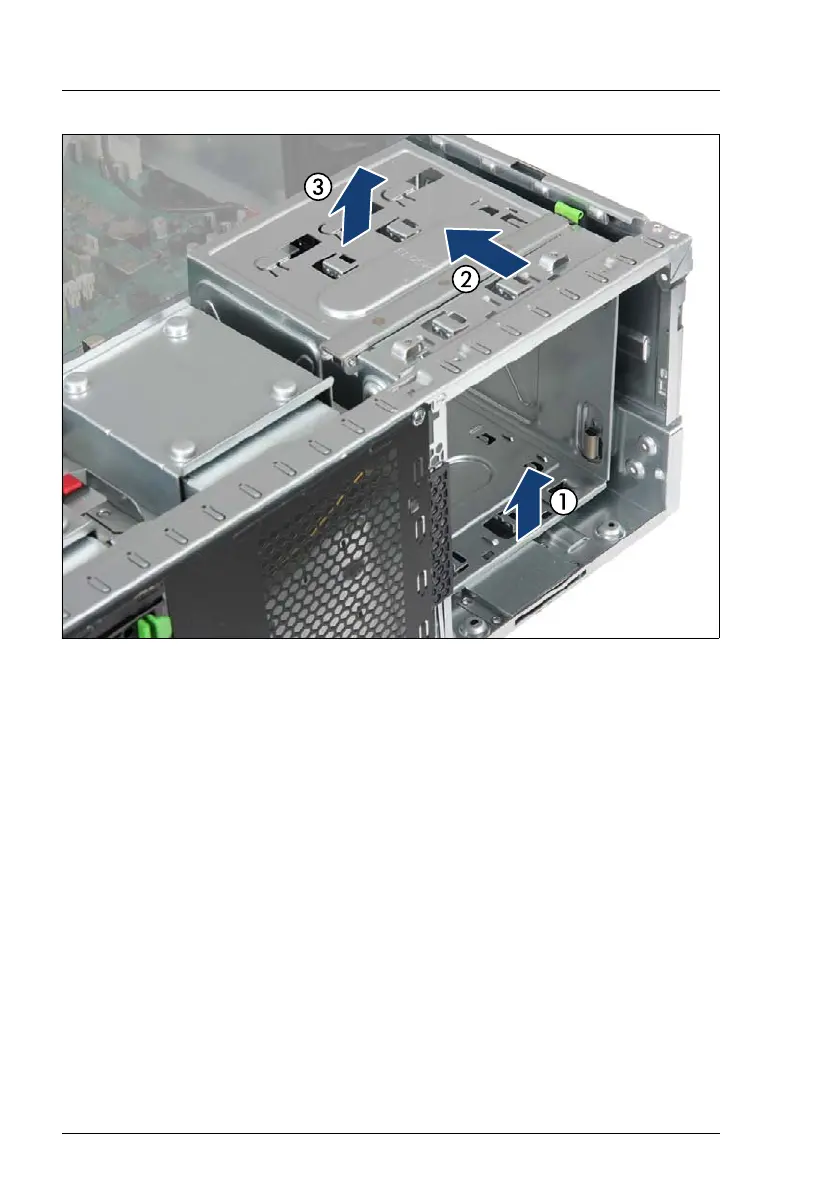 Slightly lift up the accessible drive cage to disengage its front bottom edge