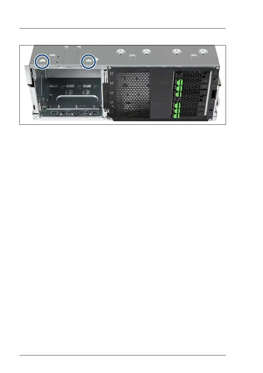 Secure the accessible drive cage with the two screws (see circles) to the