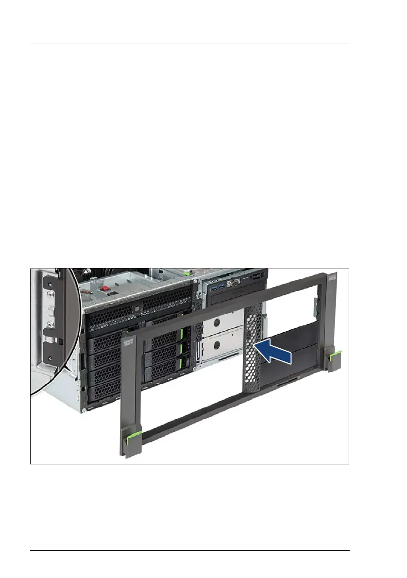 Fit the rack mounting frame on the server front.