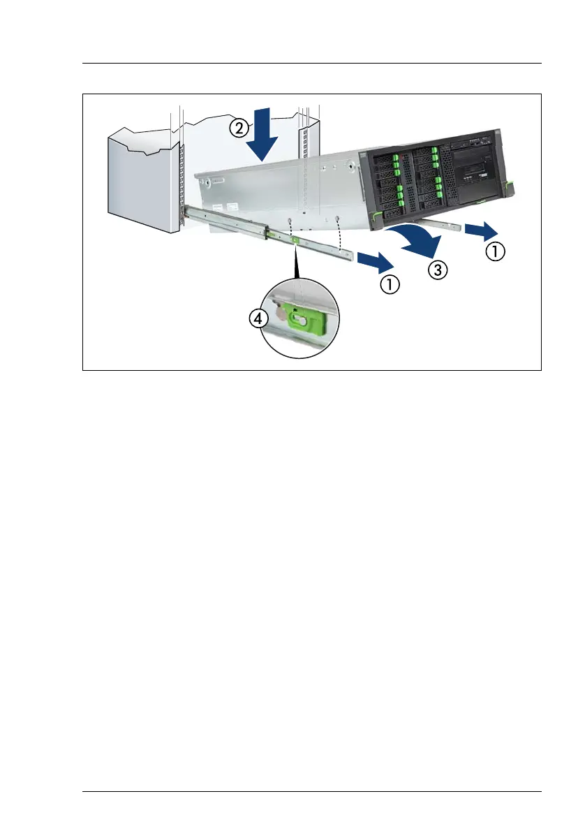 Figure 26: Mounting the server onto the rack rails