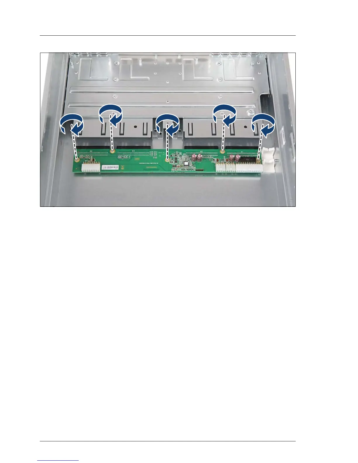 Ê Secure the power backplane on the spacer bolts with five screws (see