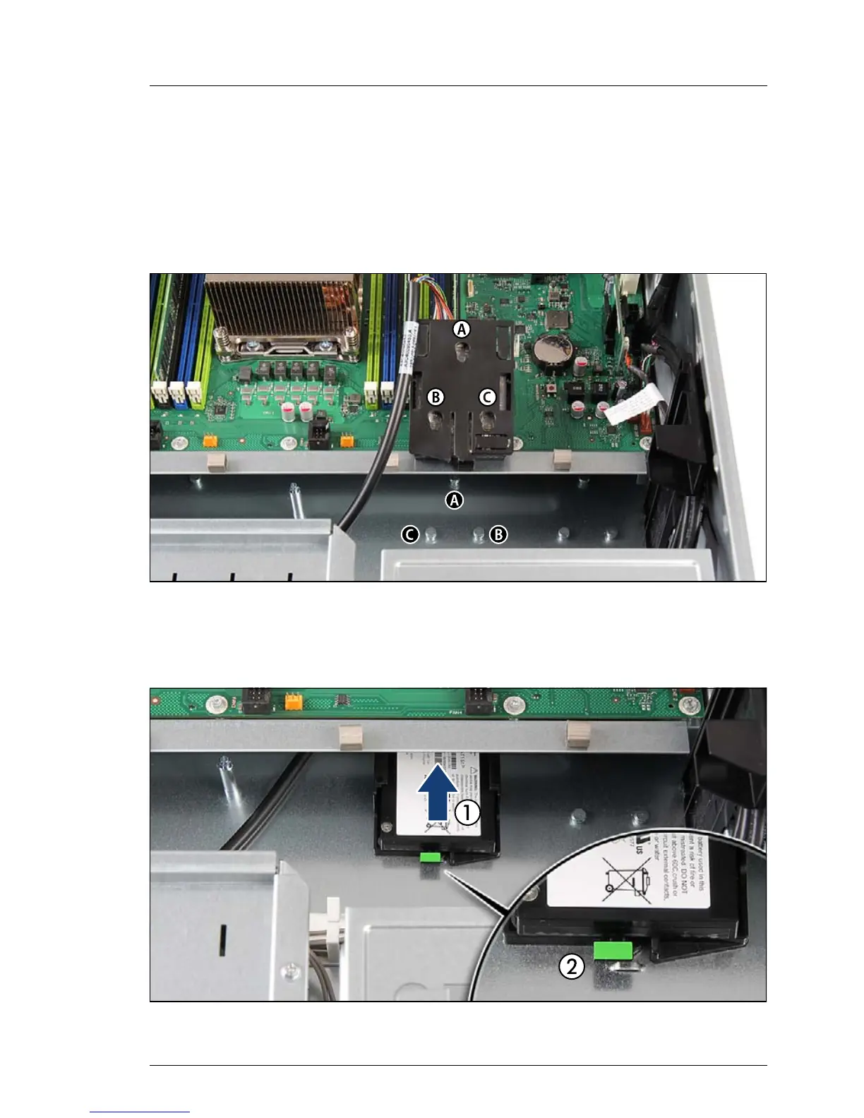 Ê At a slight angle, fit the BBU under the right retaining bracket on the BBU