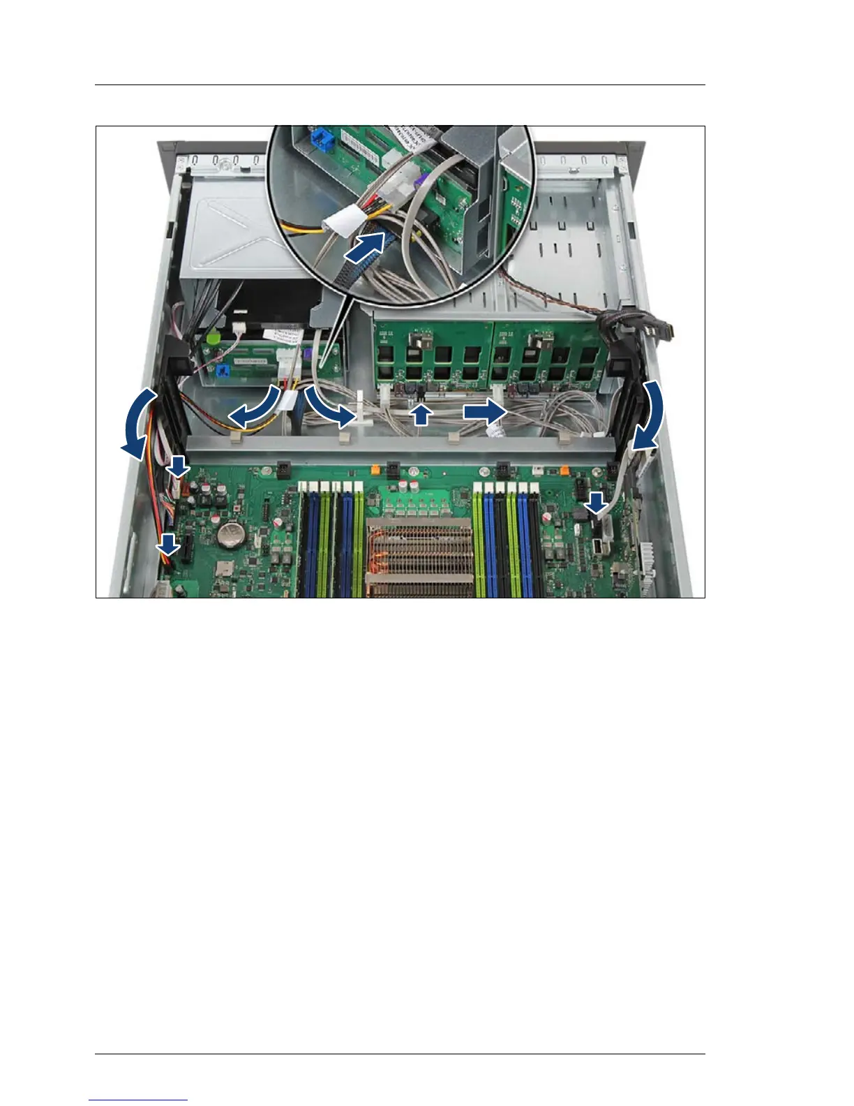 Ê Run SATA cable T26139-Y3958-V205 along the drive bays and through the