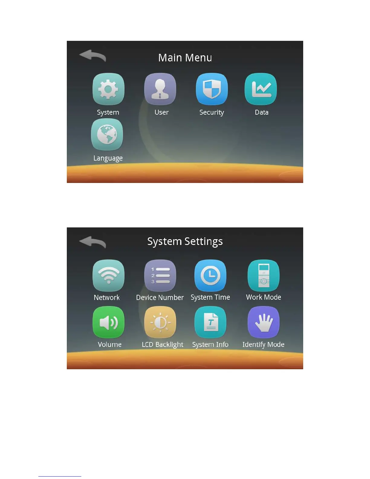 You can set the network communication, device number, system time, work mode,