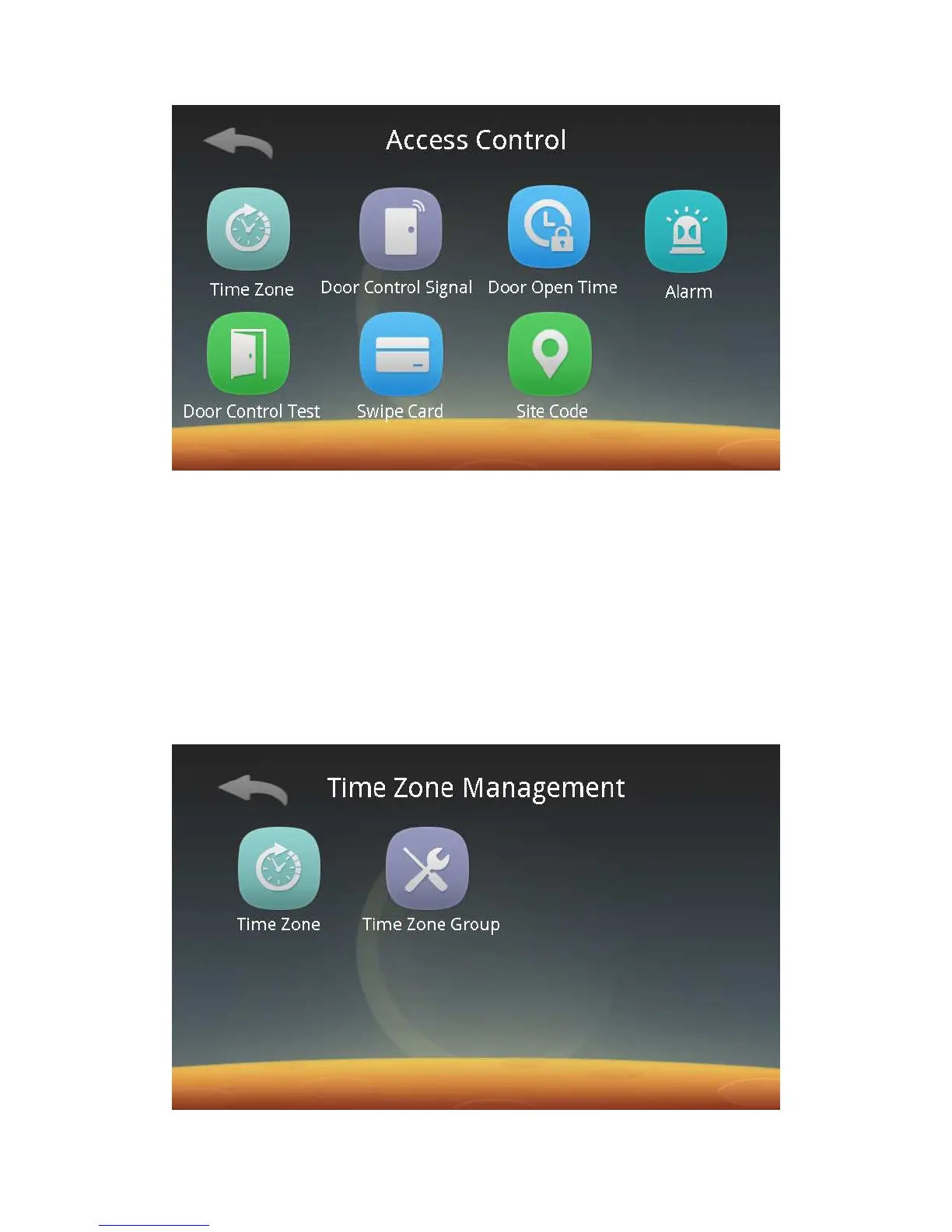 In this interface, you can carry out time zone management, door access