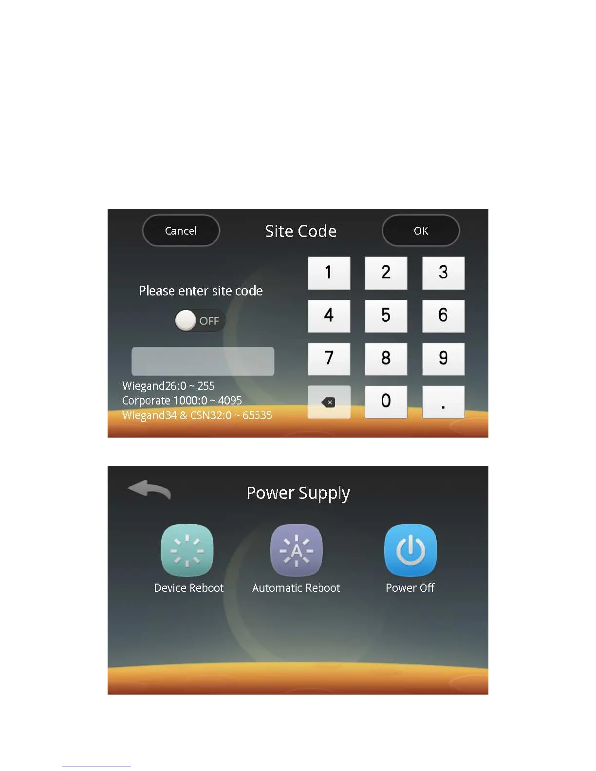 Follow the prompts to carry out Site Code settings. See Chapter5 Output Protocol for