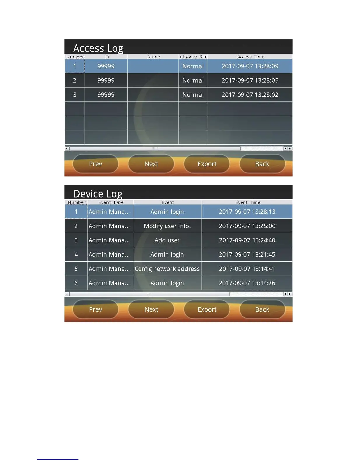 Click Access Log Clear and Device Log Clear respectively to enter the