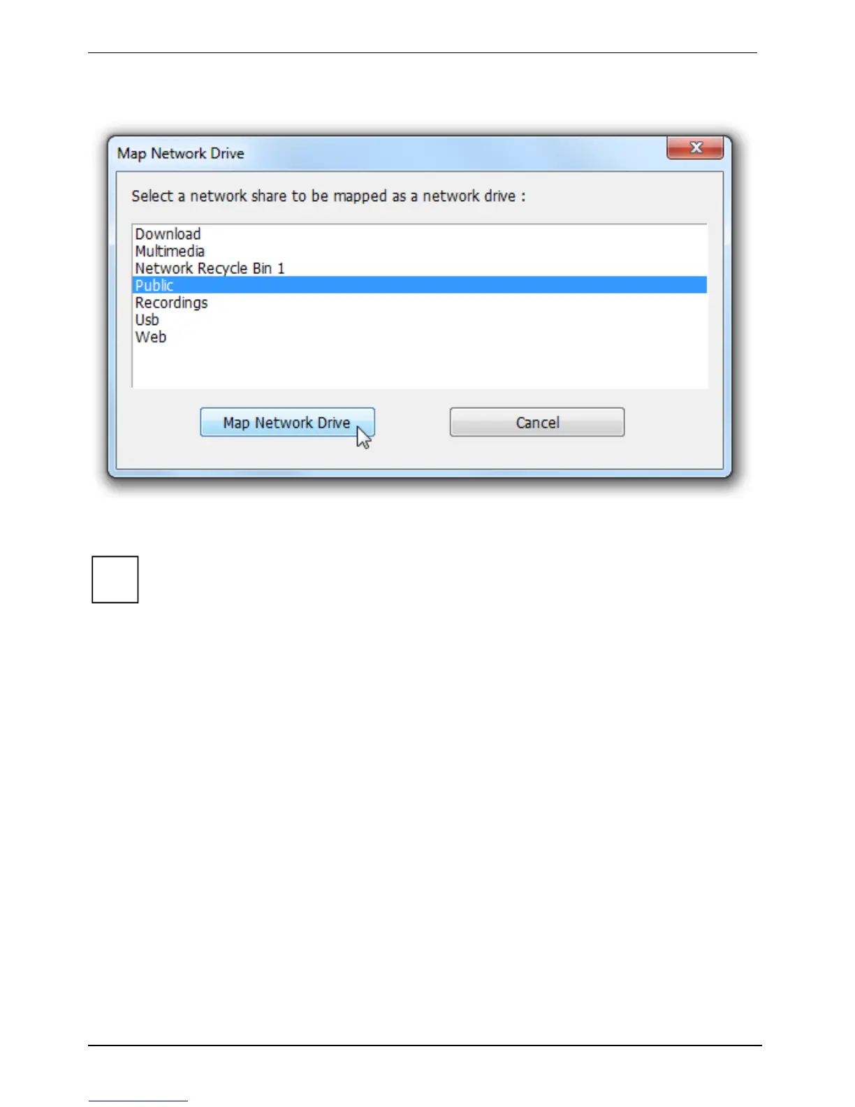 Select the network share that should be mapped as a network drive and click on Map network