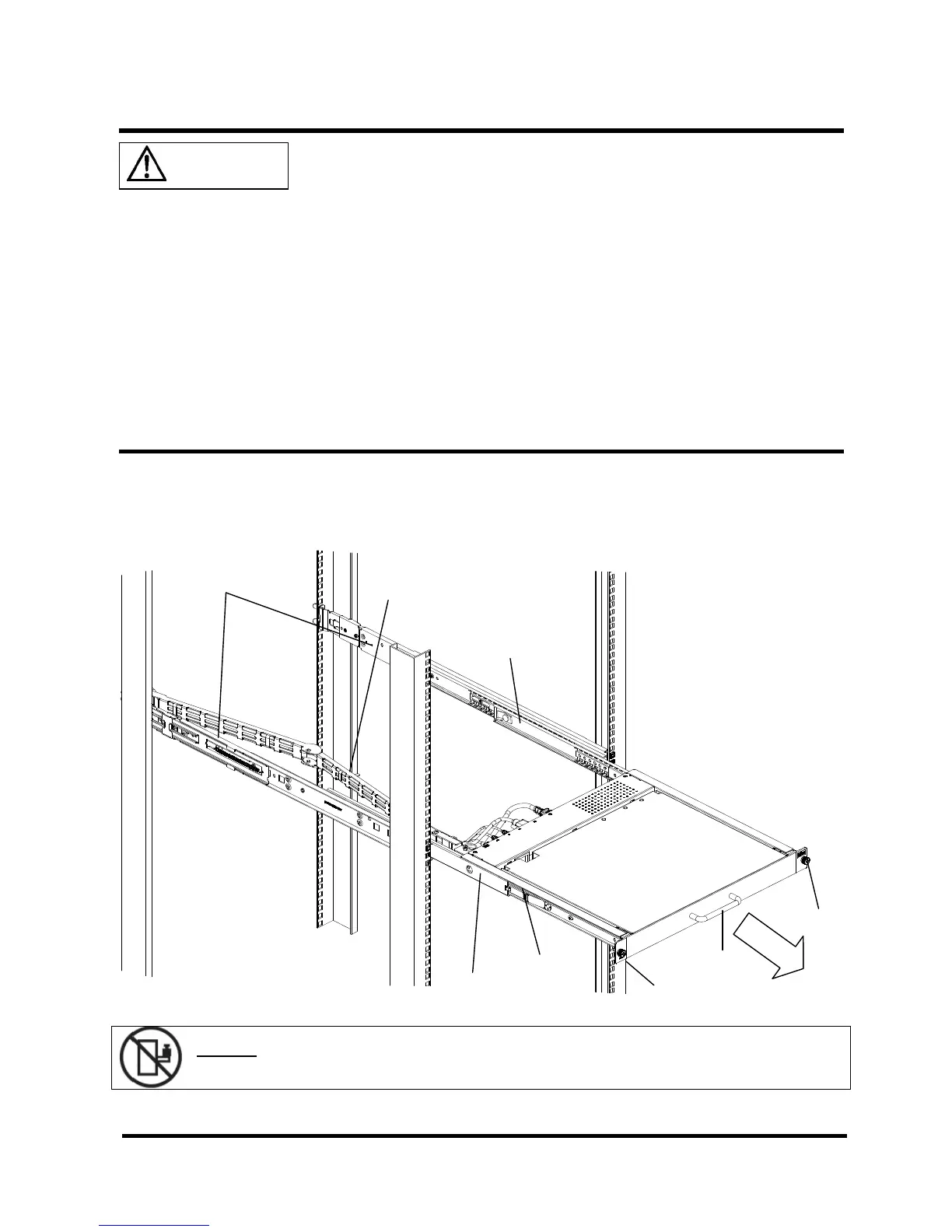 Caution: Do not use device unit mounted on pull-out rails as a surface on which to