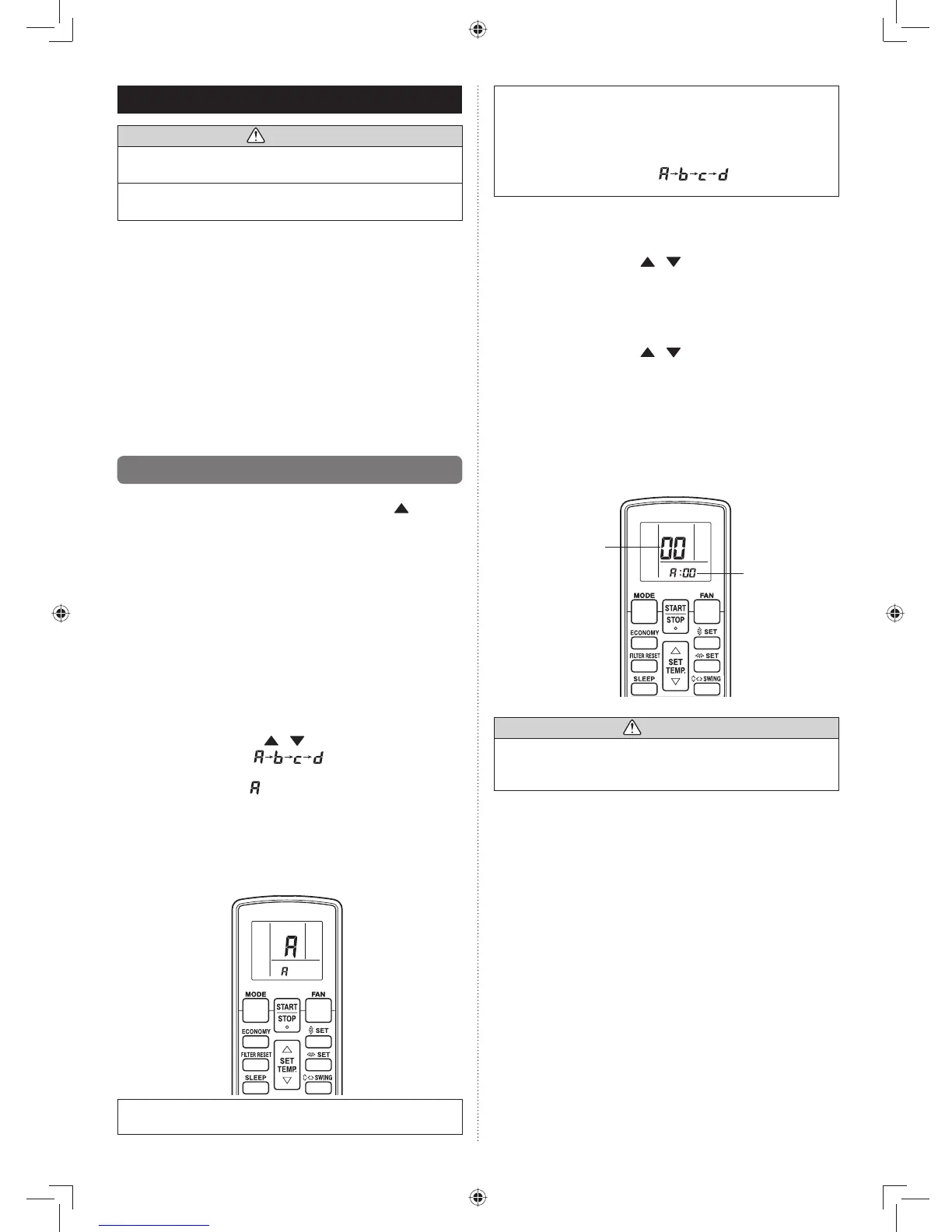 The air conditioner signal code is factory-set to A .