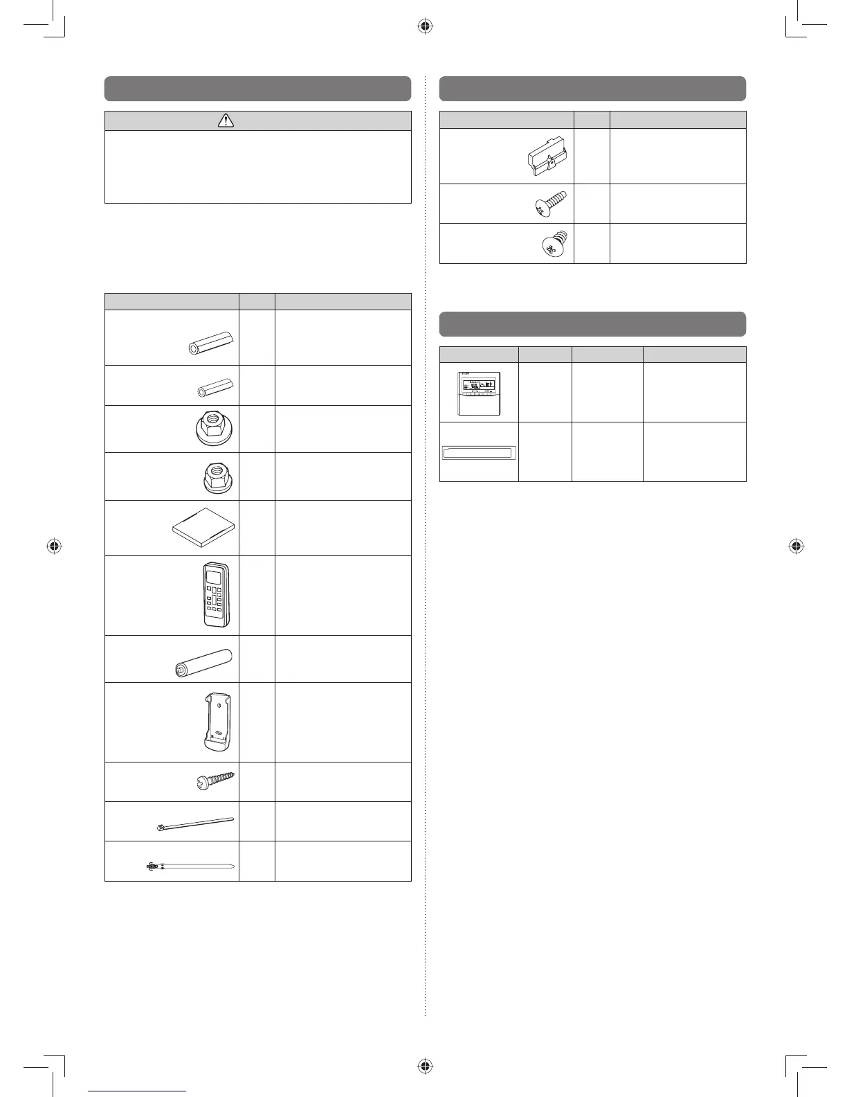 The following installation parts are furnished. Use them as •