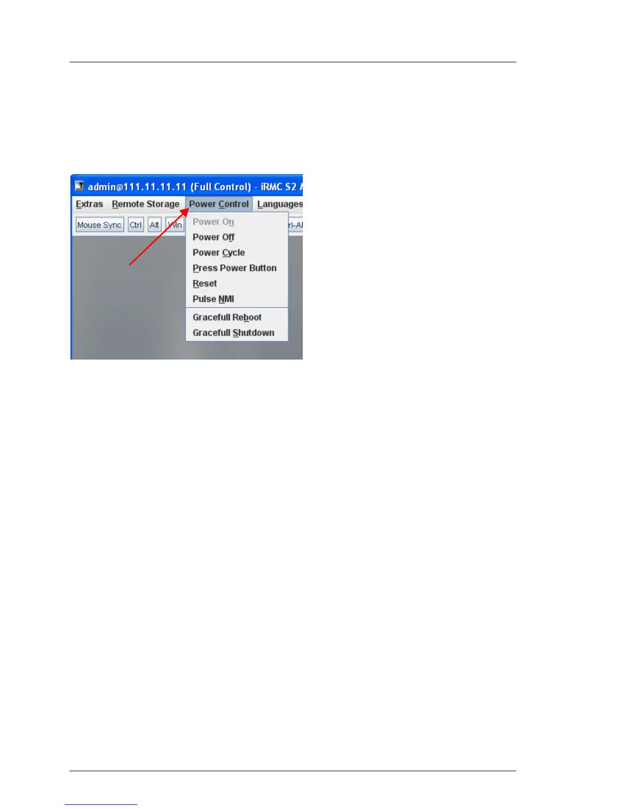 The Power Control menu allows you to power the server up/down or to reboot the