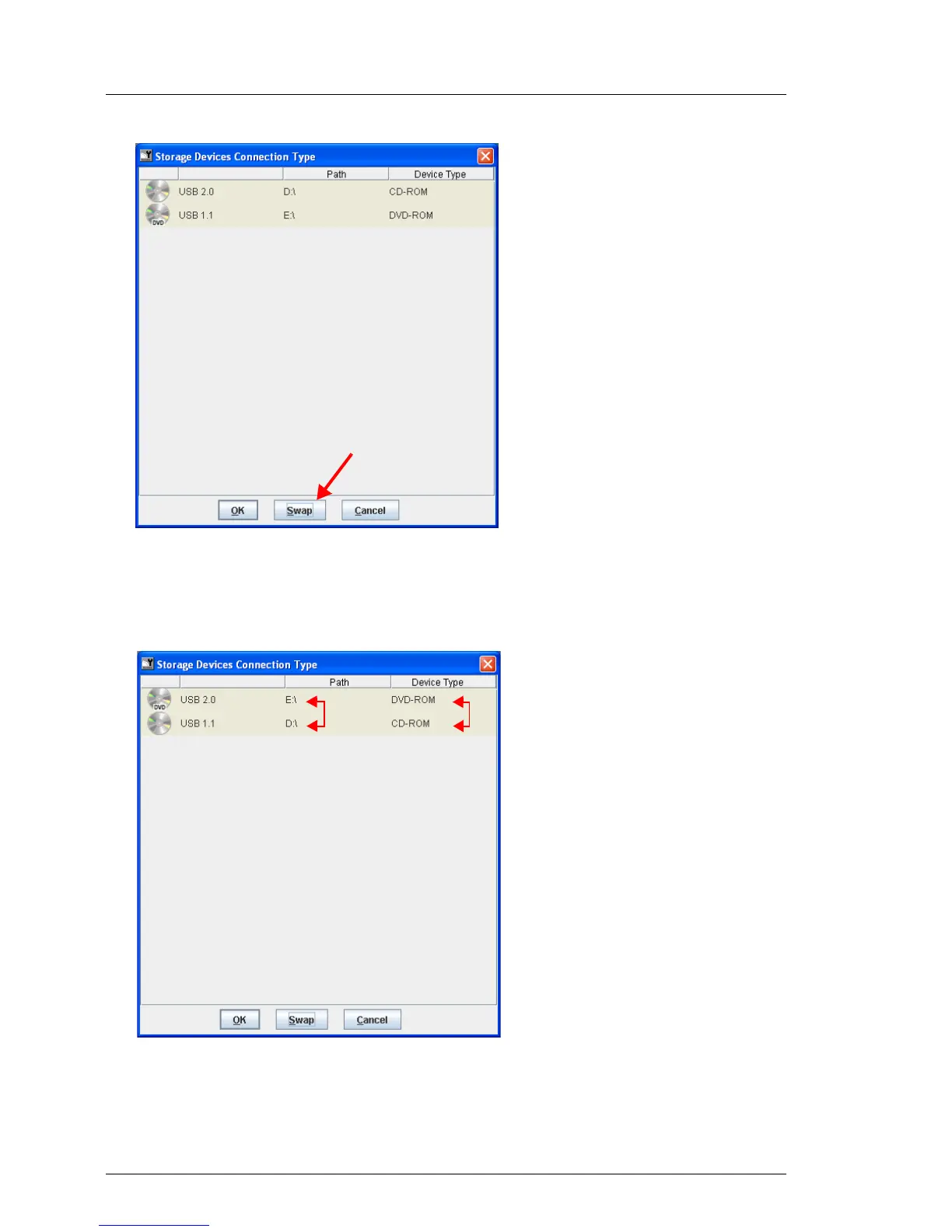 Ê Click Swap if you want to swap the assignment of the storage devices to