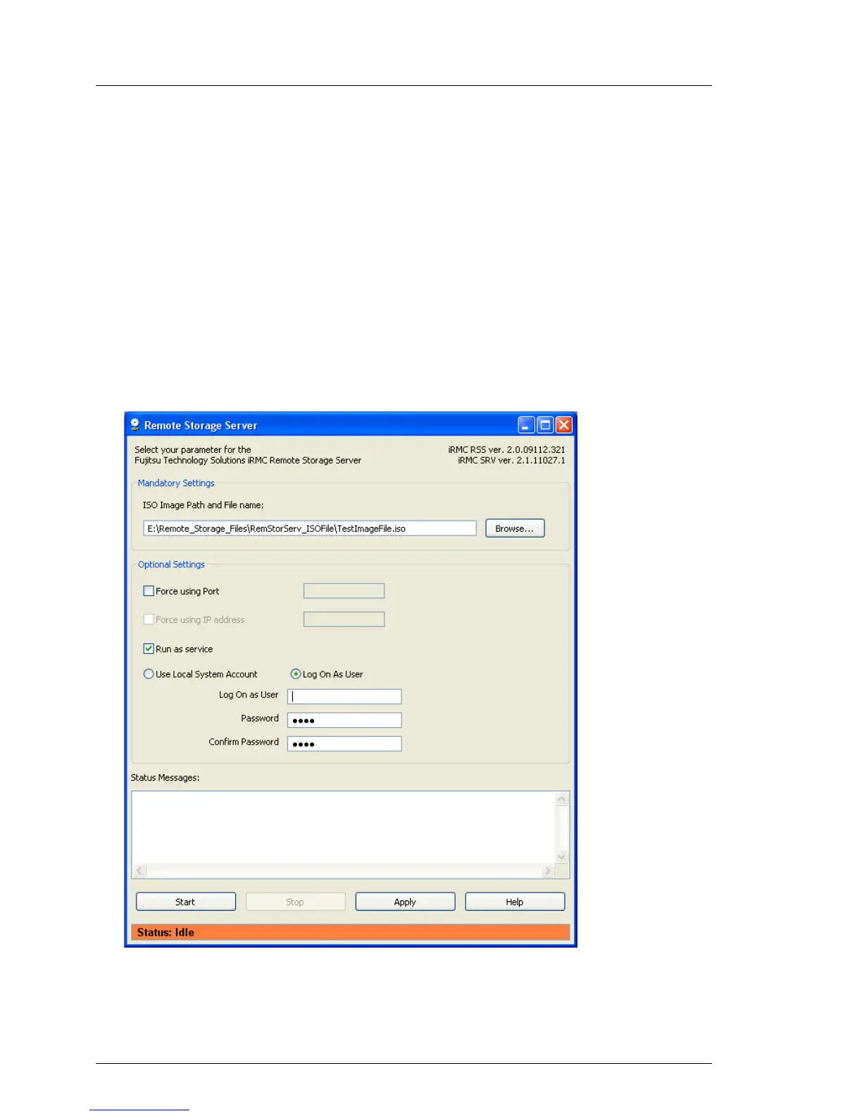 Figure 60: The Remote Storage server’s graphical user interface (here in the “Idle” state)