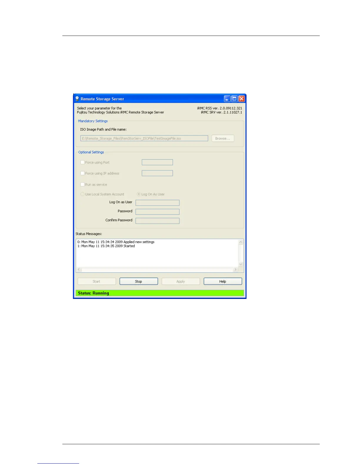 Figure 61: The Remote Storage server is executed (“Running” status)